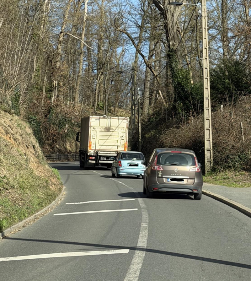 Tout d’abord, l’interdiction de circulation des poids lourds n’est manifestement pas respectée. Malgré la signalisation en place, ces véhicules continuent d’emprunter des axes qui leur sont pourtant interdits.